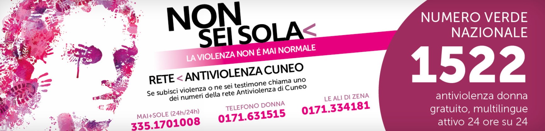 - Novembre a Cuneo: una rassegna di eventi per dire NO alla violenza sulle donneCuneo torna a tingersi di rosso anche questo novembre, in occasione della Giornata internazionale per l’eliminazione della violenza contro le donne, con la consueta rassegna… Leggi tutto: Novembre a Cuneo: una rassegna di eventi per dire NO alla violenza sulle donne